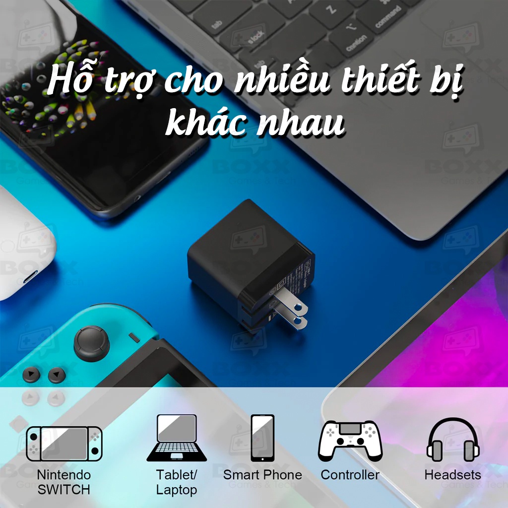 Bộ sạc chính hãng Skull & Co cho Nintendo Switch, Adapter Sạc Nintendo Switch Sản phẩm chính hãng giúp hỗ trợ đắc lực cho thiết bị chơi game của bạn. ==================================== Không giống như bộ sạc gốc theo máy của Switch : Skull & Co Adapter được thiết kế tối ưu cho việc sử dụng tiện lợi cũng như tính đa dụng. Các nâng cấp chính : - Được hỗ trợ bởi công nghệ GaN : Giúp giảm đáng kể kích thước của bộ sạc mà vẫn đảm bảo được công suất nguồn điện cũng như khả năng sử dụng bền bỉ. - Khả năng tương thích tuyệt vời : Cung cấp nhiều đầu ra cho Nintendo SWITCH (Hỗ trợ Chế độ TV), điện thoại thông minh, bộ điều khiển, tai nghe và các thiết bị khác. - Kích thước và trọng lượng cực nhẹ giúp dễ dàng mang đi và bỏ trong các túi đựng tay cầm mà không chiếm nhiều diện tích. - Chân cắm có thể gập được giúp không gây vướng, rách túi đựng. - Dây sạc tháo rời. - Hoạt động hoàn hảo với Jumpgate Dock