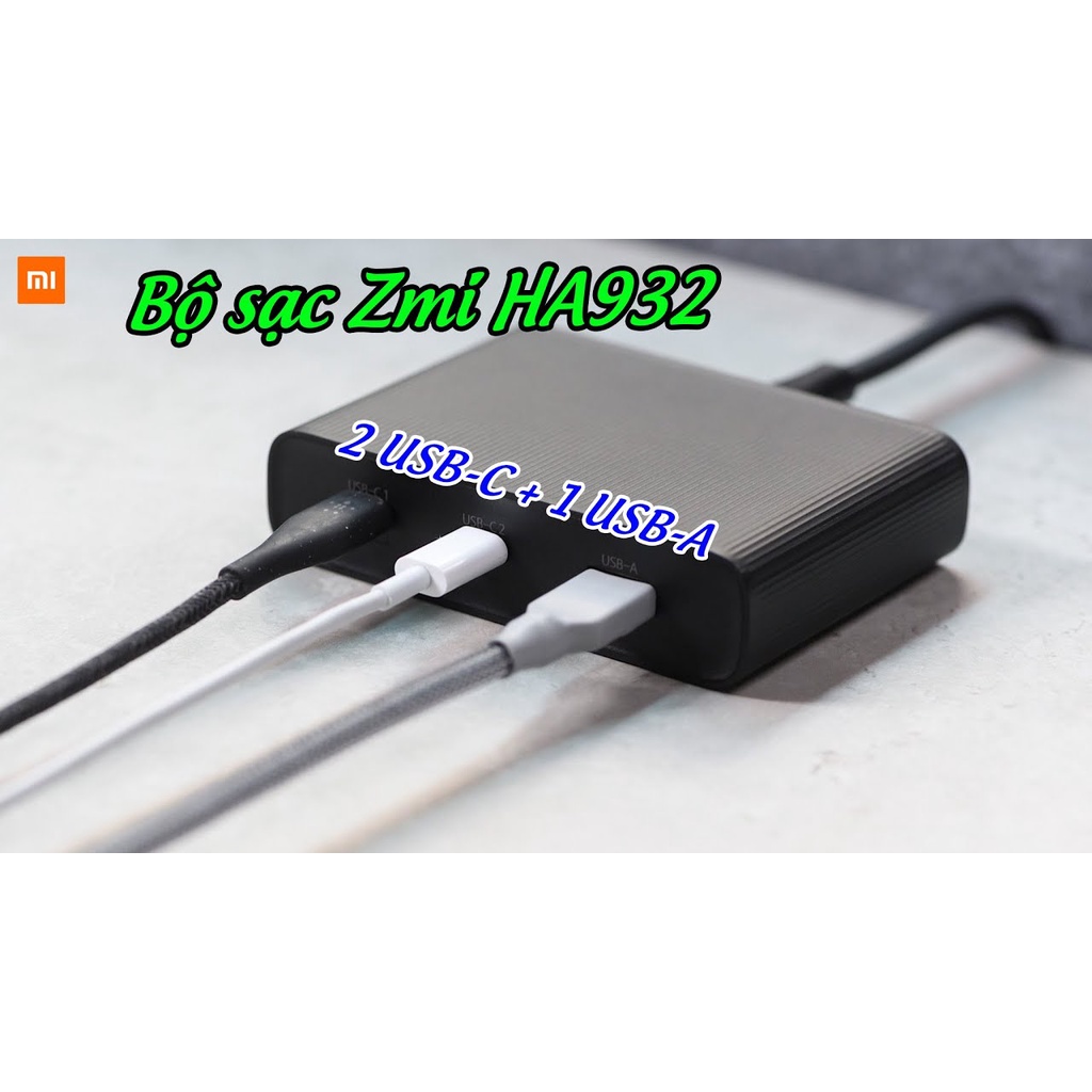 Bộ sạc Zmi hỗ trợ PD 3 cổng 65W HA932 kèm cáp C to C LƯU Ý : + Sản phẩm có kèm theo 1 Cáp C-C Đen dài 1,5m + Tính năng sạc nhanh chỉ hỗ trợ cho điện thoại có hỗ trợ công nghệ sạc nhanh Quickcharge (Iphone 8plus trở lên đối với IOS qua cổng Type-C). Và chuẩn PD chỉ kí