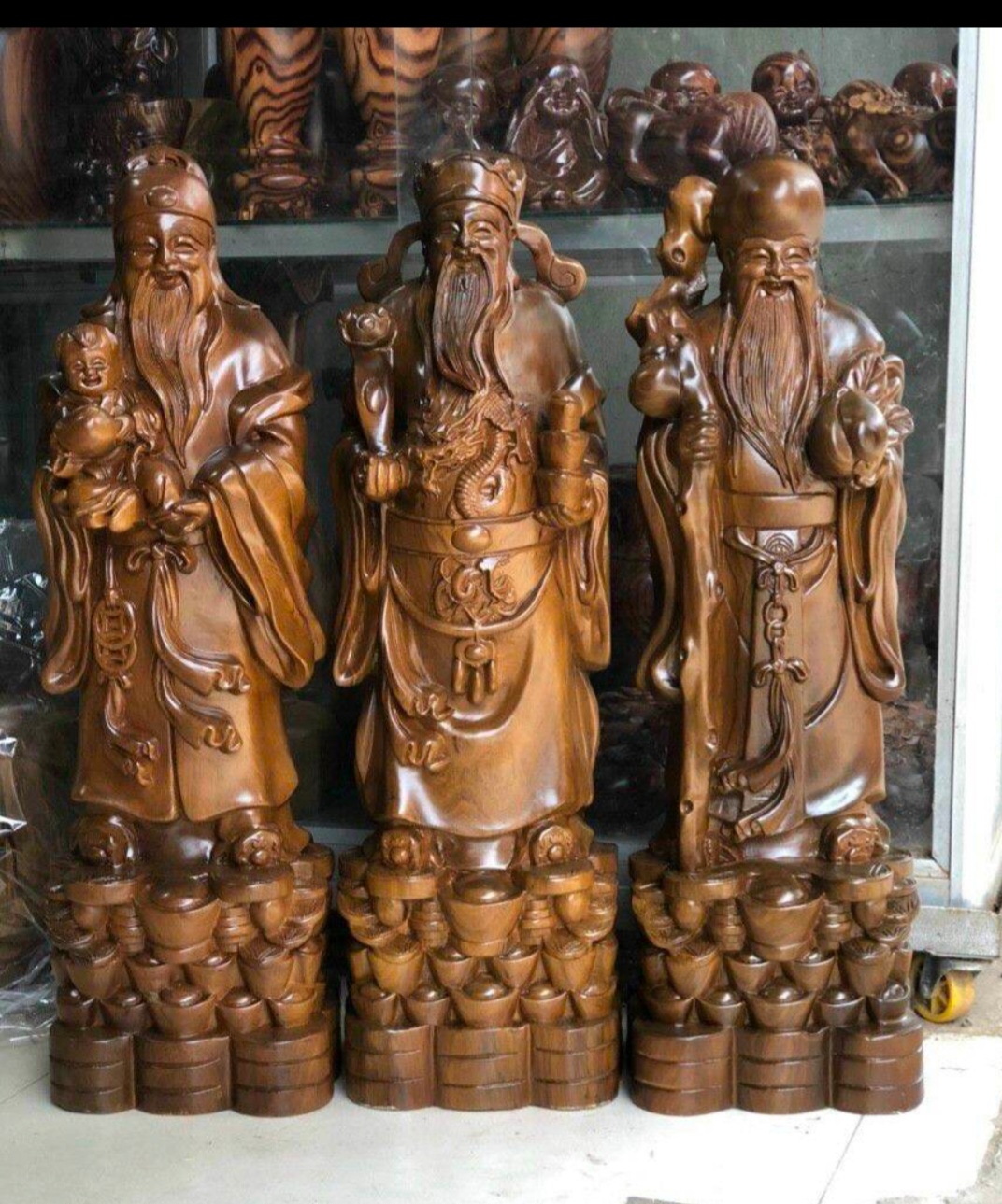 Bộ tượng phật tam đa phúc lộc thọ ,bằng gỗ bách xanh thơm nức kt cao 40×13×11,5cm
