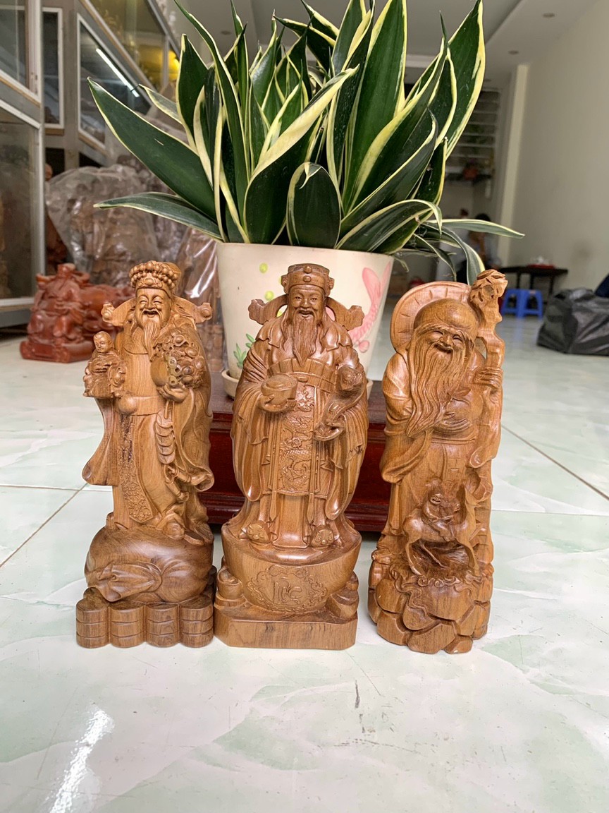 Bộ tượng phật tam đa phúc lộc thọ mini bằng gỗ bách xanh thơm nức kt cao 20cm