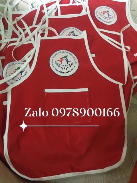 Sản phẩm tạp dề cho bé Độ tuổi : mầm non Kiểu dáng: viền trắng Chất liệu vải kaki Màu sắc : đen, trắng, cam, vàng , đỏ, xanh lá , xanh dương , nâu Tạp dề sử dụng cho các bé trong các hoạt động ẩm thực , hoặc lớp học vẽ Shop in logo theo yêu cầu ( khách có bản mềm