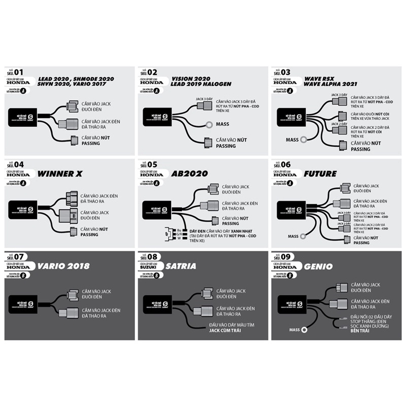 Bộ tắt mở đèn cho các dòng xe
