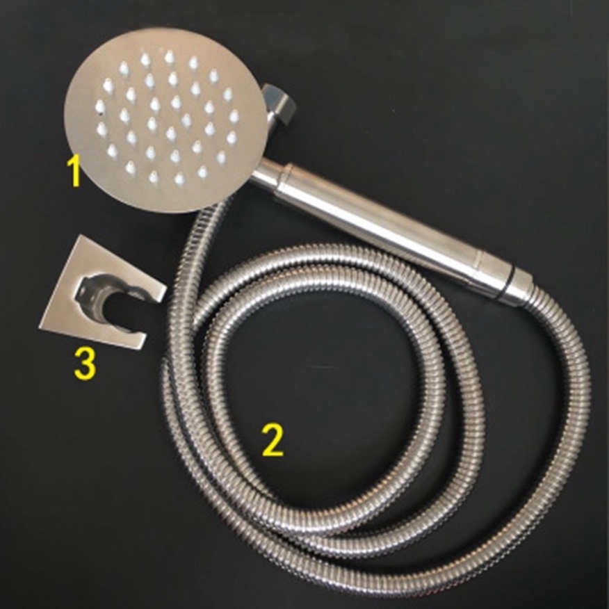 Bộ tay sen tắm inox 304 tròn sáng bóng an toàn, dễ sử dụng, giá rẻ, đủ bộ tay sen+dây+gác cài - QM063
