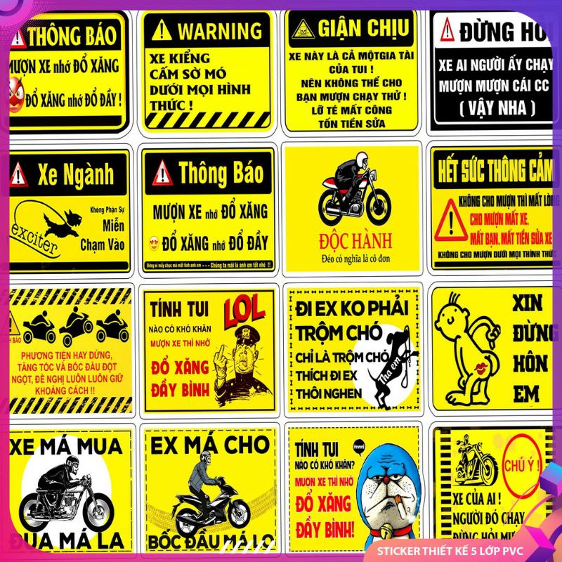 BỘ TEM TẤM CẢNH BÁO 16 TEM 2023 DÁN XE MÁY NÓN BẢO HIỂM CHỐNG NƯỚC CHỐNG BAY MÀU