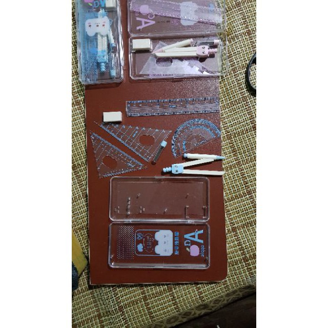 0983.258.211 (zl)Sản phẩm đồ dùng học sinh ,thước bộ gồm 8 chi tiết. - 2 cái eke - 1 cái đo độ - 1 cái thước kẻ - 1 cái compa chì kim - 1 ống chì kim - 1 viên tẩy chì (gôm) - 1 hộp đựng #vanphongpham #vănphòngphẩm