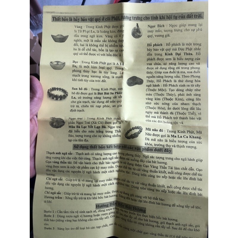 bộ thất bảo chuẩn như hình ảnh, có kèm tờ giới thiệu thành phần và công dụng từng loại, Cốt bát hương đặc biệt cốt thất bảo là một vật linh thiêng để trong bát hương dùng trong thờ cúng trong gia đình, là biểu hiện Tâm linh trên ban thờ. Đó là nơi mỗi khi thắp hương t
