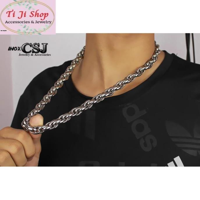 Trang sức Inox - Thép không gỉ Màu sắc: như hình Chất liệu: Thép không gỉ (Inox cao cấp), không đen, không gỉ sắt. Hình ảnh: chụp thực tế 100% tại shop, (Do yếu tố ánh sáng và góc chụp, nên màu sắc có thể khác hình 1 chút xíu) Kích thước: như hình to 7mm, 11mm; dài 20cm Thiết kế: tinh xảo, tỉ mỉ mang lại vẻ quý phái và sang trọng. Thích hợp làm quà tặng cho người thân, bạn bè và "người ấy" - ĐẢM BẢO SẢN PHẨM NHƯ HÌNH nếu khác hình xin hoàn tiền 100%. - Quý khách có thể vào link: - Bấm Xem Shop và nhấn nút Theo dõi để cập nhật sớm các chương trình Khuyến mãi và Mã giảm giá của Shop nhé. - Khi Nhận được sản phẩm vui lòng Xác nhận ĐÃ NHẬN HÀNG, nếu có gì Không hài lòng quý khách hãy nhắn tin (inbox) ngay cho shop để được Shop hỗ trợ giải quyết nhé. Nếu hài lòng xin Đánh Giá 5 Sao để nhận 100 xu cho lần mua sắm tiếp theo nhé. Chân thành cảm ơn. Giá sản phẩm trên Tiki đã bao gồm thuế theo luật hiện hành. Bên cạnh đó, tuỳ vào loại sản phẩm, hình thức và địa chỉ giao hàng mà có thể phát sinh thêm chi phí khác như phí vận chuyển, phụ phí hàng cồng kềnh, thuế nhập khẩu (đối với đơn hàng giao từ nước ngoài có giá trị trên 1 triệu đồng).....