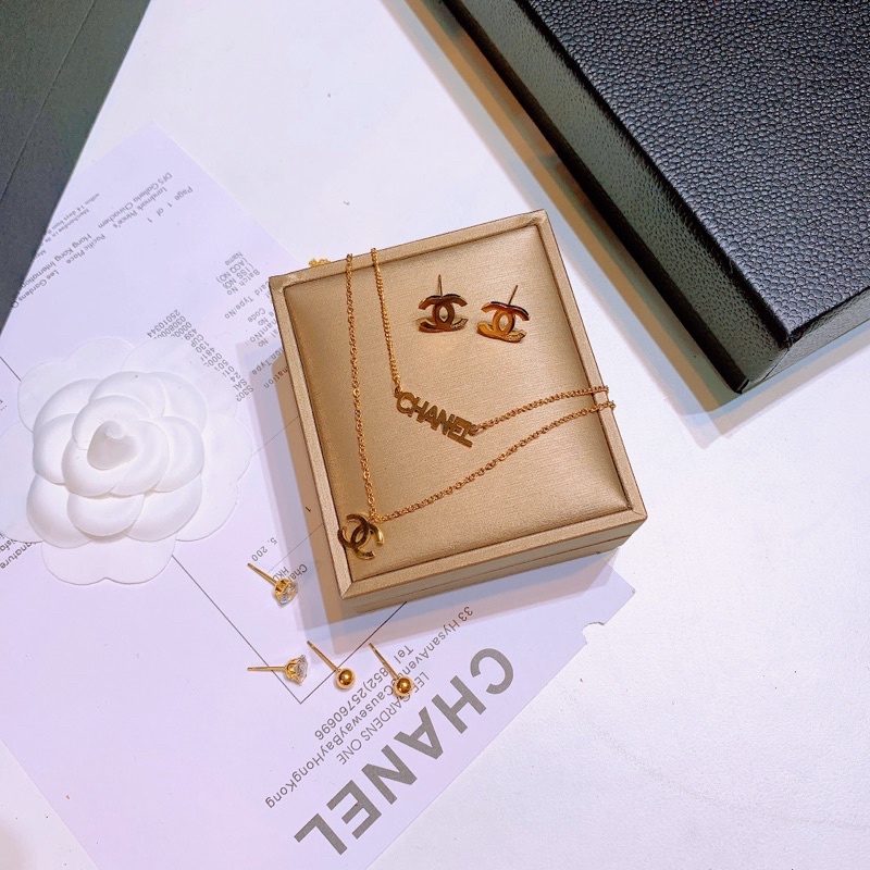 Bộ trang sức titan cao cấp hãng có video mẫu đeo gồm vòng cổ và 3 đôi bông tai