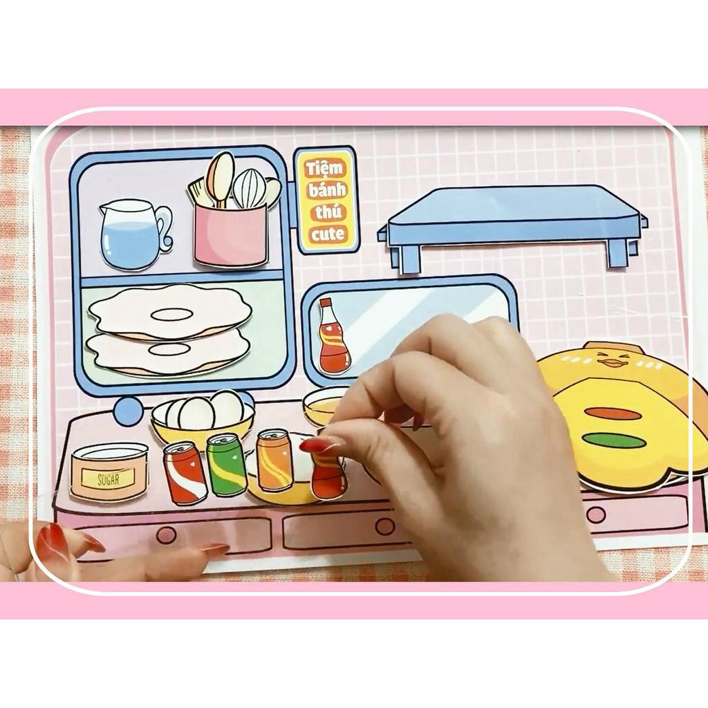 Bộ tranh tiệm bánh thú cute-đồ chơi cắt dán thủ công-UN ĐỒ CHƠI GIẤY