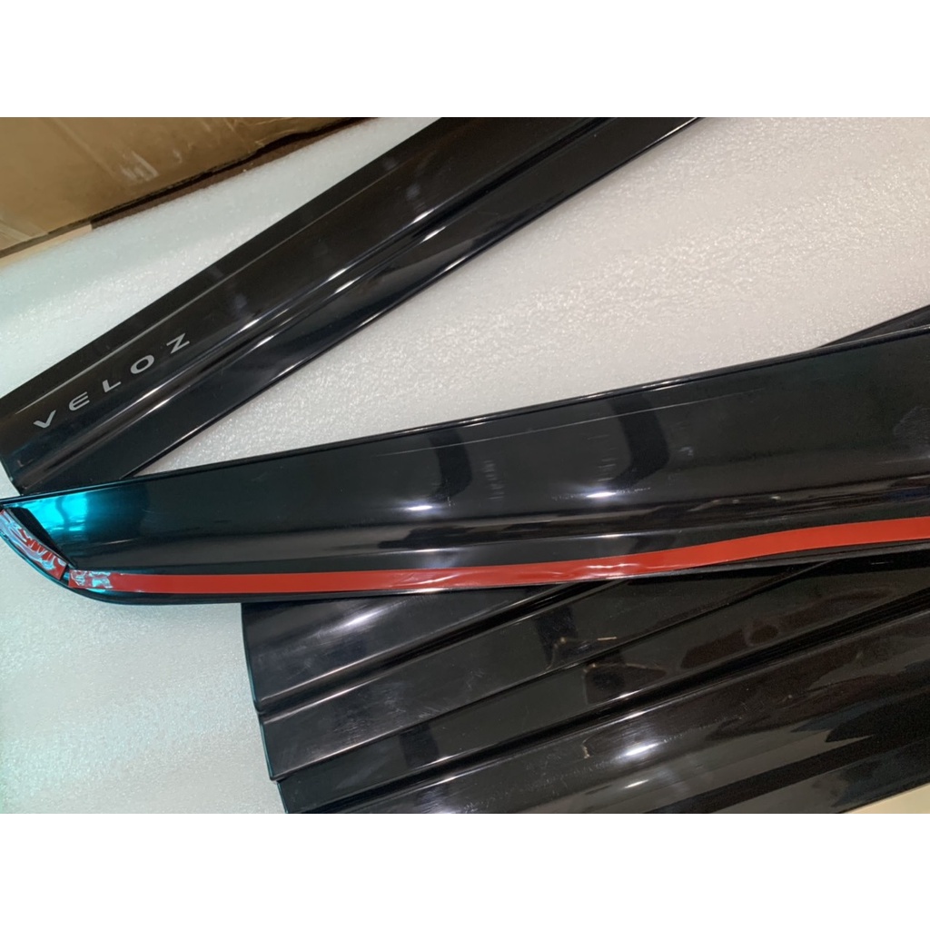Bộ vè che mưa Toyota Veloz nhựa ABS cao cấp. Được sản xuất trên dây chuyền công nghệ hiện đại, từ chất liệu nhựa ABS cao cấp, được sơn phủ tĩnh điện màu đen, có độ bền cao, chống chịu được nhiều loại thời tiết, không bám bụi bẩn, dễ dàng lau chùi, vệ sinh. Được thiết kế theo phom xe, ôm vừa khít với phần kính trên của cửa xe. Bộ vè che mưa có tác dụng: – Giữ cho cửa sổ sườn khô trong mưa, râm mát trong nắng. – Cố định góc tác động của gió, làm lệch hướng bụi bẩn và mãnh vỡ. – Làm giảm đáng kể tiếng ồn của gió khi đi ngược chiều. – Che khuất khe hở của kính xe, để phòng kẻ gian trộm đồ. – Thiết kế vừa in, tôn lên vẻ khỏe khoắn cho từng chiếc xe. Bộ sản phẩm gồm 4 chi tiết cho 4 cửa xe, có sẵn keo 3M ở mặt sau sản phẩm, rất chắc chắn. Khách hàng có thể tự lắp đặt tại nhà mà không cần tới sự trợ giúp của kĩ thuật viên cũng như không cần phải mang đến các Gara lắp đặt, chỉ cần bóc miếng dán 2 mặt và vệ sinh sạch sẽ bề mặt cần dán rồi dán lên trên. Quý khách hàng có thể xem Video Clip hướng dẫn chi tiết phía dưới, để quá trình lắp đặt dễ dàng hơn.