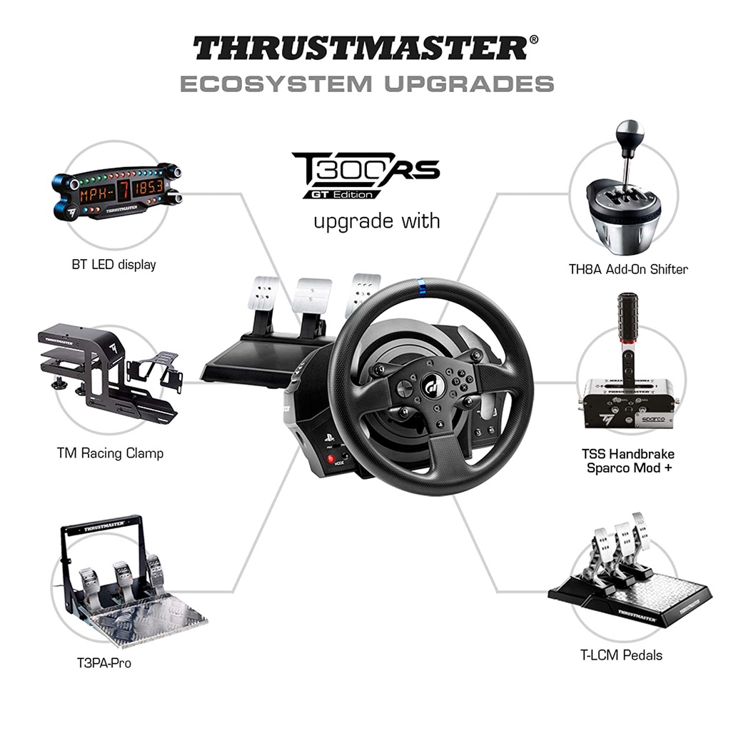 HÀNG CHÍNH HÃNG BẢO HÀNH 12 THÁNG 🔵Vô Lăng Thrustmaster T300 RS GT Edition - Bộ Vô Lăng Thrustmaster T300 RS GT Edition được sản xuất theo license của Gran Turismo nhằm mô phỏng hình dáng và hiệu suất của nhiều loại xe, hầu hết trong số đó là bản sao được cấp phép của
