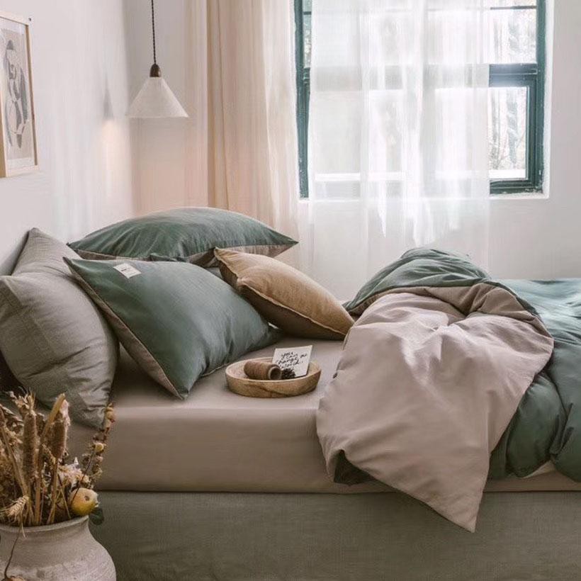 Bộ vỏ chăn ga gối cotton tici LIDACO - Xanh Mint Ga Be