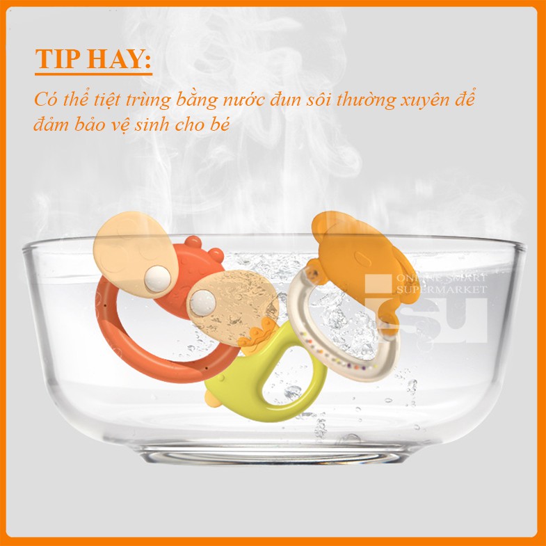 Bộ xúc xắc gặm nướu silicon cầm tay Dumoon an toàn cho bé trên 3 tháng tuổi (có hộp đựng) Đồ chơi cho bé ngậm nướu Bộ đồ chơi gặm nướu cho bé ♥️ Chất liệu: Xúc xắc được làm từ chất liệu nhựa ABS cao cấp kết hợp với gặm nướu silicon, không mùi, không gây kích ứng, an toàn cho bé nên con bạn có thể thoải mái chơi đùa, gặm khi nứt lợi, đau nướu, mọc răng. ♥️ Thiết kế: Bộ đồ chơi thông minh cho bé có 10 đồ chơi chi tiết. Được đặt tên tương ứng với 10 loài động vật dễ thương khác nhau. ♥️ SET sản phẩm được đựng trong hộp nhựa xinh, có tay cầm và chốt khóa, rất dễ cầm xách và di chuyển ♥️ Được làm từ chất liệu cao cấp nên bạn có thể tiệt trùng bằng nước sôi, hơi nước hoặc chiếu tia UV. ♥️ Một điểm đặc biệt, là mọi thiết kế của sản phẩm đều bo tròn, không góc cạnh. Như vậy bé sẽ được chơi đùa thoải mái mà không lo bị thương. ♥️ Màu sắc sản phẩm tươi sáng --> Kích thích thị giác của trẻ. ♥️ Kích thước: Chi tiết theo hình ảnh mô tả. Bộ xúc xắc gặm nướu hay còn gọi là đồ chơi cho bé ngậm nướu, nướu ngậm cho bé... là một vật dụng thường được bố mẹ lựa chọn cho trẻ sơ sinh trong giai đoạn đầu đời (3 tháng trở lên) khi bé bắt đầu mọc răng. Vì trong giai đoạn này, trẻ thường cảm thấy đau nhức, khó chịu và hay ngậm mút ngón tay, hay cắn những đồ vật xung quanh rất mất vệ sinh. Gặm nướu sẽ giúp xoa dịu cơn đau, ngứa một cách nhanh chóng cũng như hỗ trợ việc phát triển xương hàm. Bộ xúc xắc gặm nướu được thiết kế đặc biệt giữa đồ chơi xúc xắc và dụng cụ gặm nướu cho bé. Những món đồ này thường được thiết kế với nhiều màu sắc tươi sáng khác nhau, thu hút sự chú ý của các bé, kích thích cho thị giác của bé yêu trong giai đoạn đầu đời này phát triển. Không chỉ thế, các chiếc gặm nướu còn được thiết kế với nhiều hình dáng ngộ nghĩnh, đáng yêu, mang đến cho bé sự thích thú mỗi khi chơi cùng. Một số lưu ý khi cho bé chơi xúc xắc gặm nướu - Luôn vệ sinh sạch sẽ xúc xắc gặm nướu cho trẻ sau mỗi ngày sử dụng để đảm bảo an toàn tuyệt đối cho trẻ, đặc biệt không mắc các bệnh thông qua đường miệng. - Tiệt trùng đồ chơi bằng cách luộc qua nước sôi, hơi nước hoặc chiếu tia UV để loại bỏ các vi khuẩn có hại - Khi trẻ chơi cần có sự giám sát của người lớn. Hãy lựa chọn bộ xúc xắc gặm nướu silicon cầm tay Dumoon này cho bé nhé các bạn ISU Baby - Cùng con lớn khôn và khỏe mạnh #isubaby #boxucxacgamnuou #bodochoigamnuouchobe #bodochoixucxac #dochoigamnuouantoanchobe #dochoingamnuouchobe #dungcugamnuouchobe #dongamnuou #dochoixucxacchobe #dochoichobengamnuou #dochoicannuouchobe #dogamnuouembe #dogamnuouchobe #xucxacgamnuouchobe #gamnuousilicon