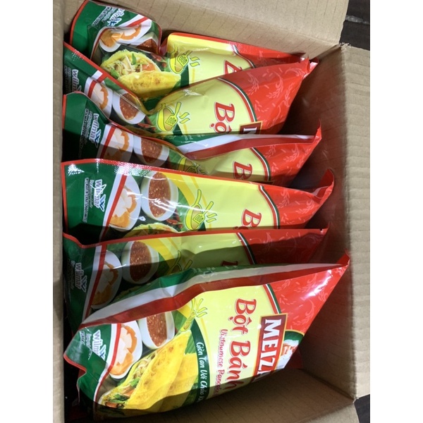 BỘT BÁNH XÈO Bột bánh xèo Meizan được chế biến từ nguyên liệu bột gạo đặc sản, phối chế theo công thức đặc biệt với thành phần cốt dừa và bột nghệ tự nhiên, cho lớp bánh mỏng vỏ, giòn vành, đậm chất truyền thống. Bánh xèo Meizan đặc biệt giòn khi đổ bằng chảo không d