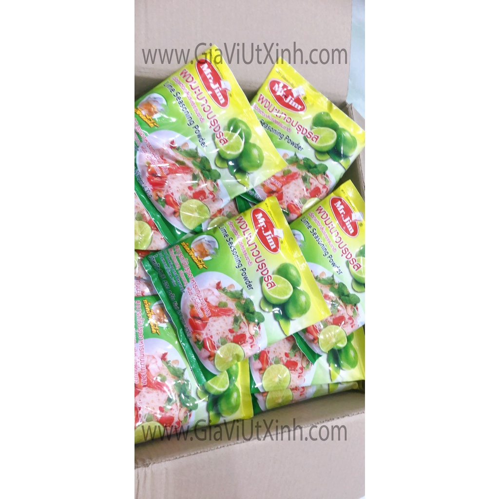BỘT CHANH THÁI MR.JIM 400G - MR JIM LIME POWDER - Sản phẩm rất được ưa thích ở những đầu bếp Thái nói riêng và chuyên nghiệp nói chung - Là gia vị không thể thiếu trong các món ăn chua cay - Dùng để nêm nếm các gia vị cho món lẩu chua cay, lẩu thái, lẩu hải sản, giúp cho món ăn thêm đậm đà, hấp dẫn. - Đặc biệt có thể dùng để làm nước uống trà chanh cực ngon giải nhiệt - Bảo quản: nơi khô ráo thoáng mát, tránh ánh nắng trực tiếp. - Xuất Xứ: Thái Lan - HSD: 18 Tháng -------------------------- Cửa hàng Gia Vị Út Xinh - Địa chỉ:( Đối diện) 27 Bùi Hữu Nghĩa. Phường 5, Quận 5, TP HCM - Hotline: 0937.838.021 (có Zalo hỗ trợ 24/24) - Giờ mở cửa: 7:00- 19:00 (hàng ngày - không nghỉ) - Mã vạch: 8852805001797 Liên hệ báo giá sỉ 0937.838.021 Shop chuyên cung cấp số lượng lớn cho nhà hàng quán ăn, có ship tỉnh qua chành xe nhà xe khi mua nhiều -- App "Gia Vị Út XInh" đã có mặt trên iOs và Android --
