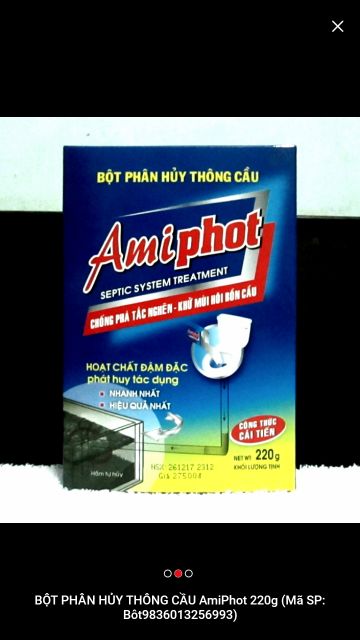 Bột Phân Hủy Thông Cầu Amiphot với công thức cải tiến hoạt chất đậm đặc phát huy tác dụng nhanh nhất hiệu quả nhất sẽ giúp chống phá tắc nghẽn và khử mùi hôi bồn cầu. Bột thông tắc vệ sinh là một công cụ hữu hiệu khi công trình nhà bạn bị tắc nghẽn thay vì thuê thợ, đ
