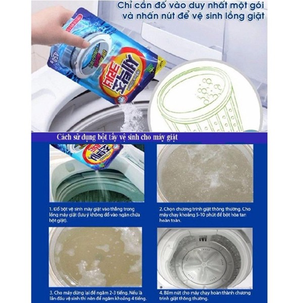 Thông Tin Sản Phẩm Tên sản phẩm : Gói bột tẩy vệ sinh lồng máy giặt 450g Korea Thành phần: Sodium Percarbonate, Sodium Lauryl Sulfate, Dipropyleneglycol, Sodium Carbonate, Chất thơm, Deformer, Tetraacetylethylenediamine. Trọng lượng: 450gr/gói. HSD: 3 năm kể từ ngày s