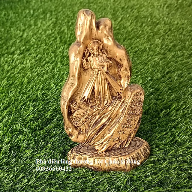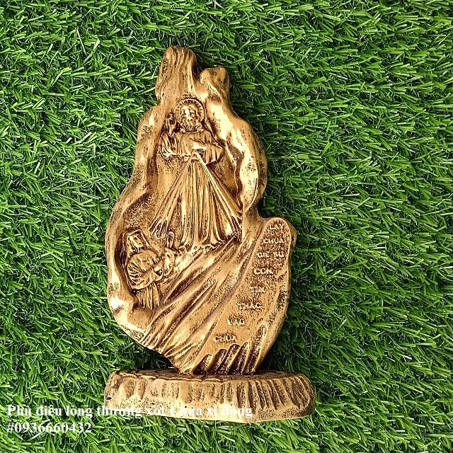 BỨC TƯỢNG CÔNG GIÁO PHÙ ĐIÊU ĐỂ BÀN LÒNG THƯƠNG XÓT CHÚA COMPOSITE XI ÁNH ĐỒNG - QUÀ TẶNG CÔNG GIÁO