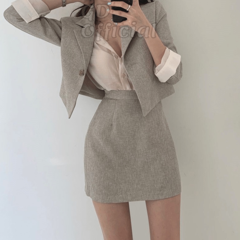 B12|Set bộ vest áo nữ công sở kèm váy chữ A thanh lịch gd_order