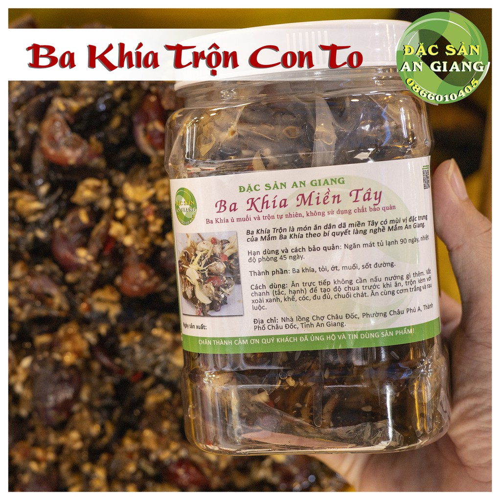 😋😋BA KHÍA TRỘN 😋😋 💁Thịt ba khía có vị mặn mặn, nước gia vị ngọt ngọt, chấm rau luộc, trộn gỏi hoặc ăn kèm cơm nóng thì thật là hao cơm lắm nè. 💁 Ba khía được làm sạch sẽ, bỏ ngoe nhỏ, bỏ mai, bỏ sạch phổi.. rửa thật sạch rồi trộn. ==================== Xuất xứ: Châu Đốc - An Giang Thành phần: ba khía, muối, đường, tỏi, ớt, gia vị ... Đóng gói: Hủ 500 gram Hạn dùng: 3 tháng Cách dùng: ăn trực tiếp với cơm hoặc có thể làm gỏi thái ... ====================