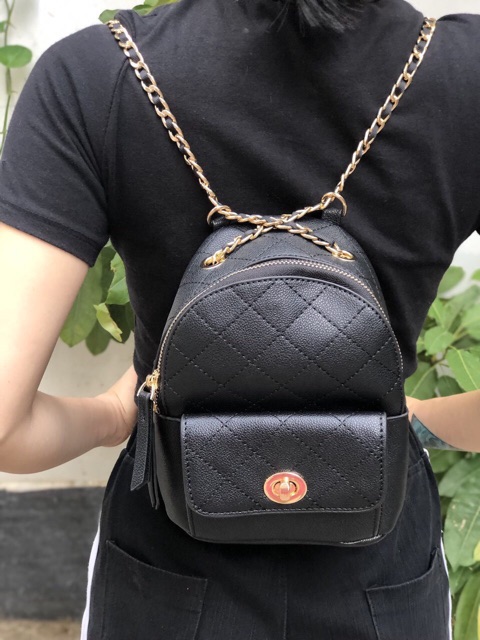 Balo Bershka xuất dư Form mini nhỏ nhắn xinh xắn. Chất da PU sần , may chần ô, Khoá mạ vàng sàn bóng. Hàng xuất xịn từ hãng . Số lượng có hạn. Mẫu này cực dễ đeo . Size: 10*20*16 Giá: 359k