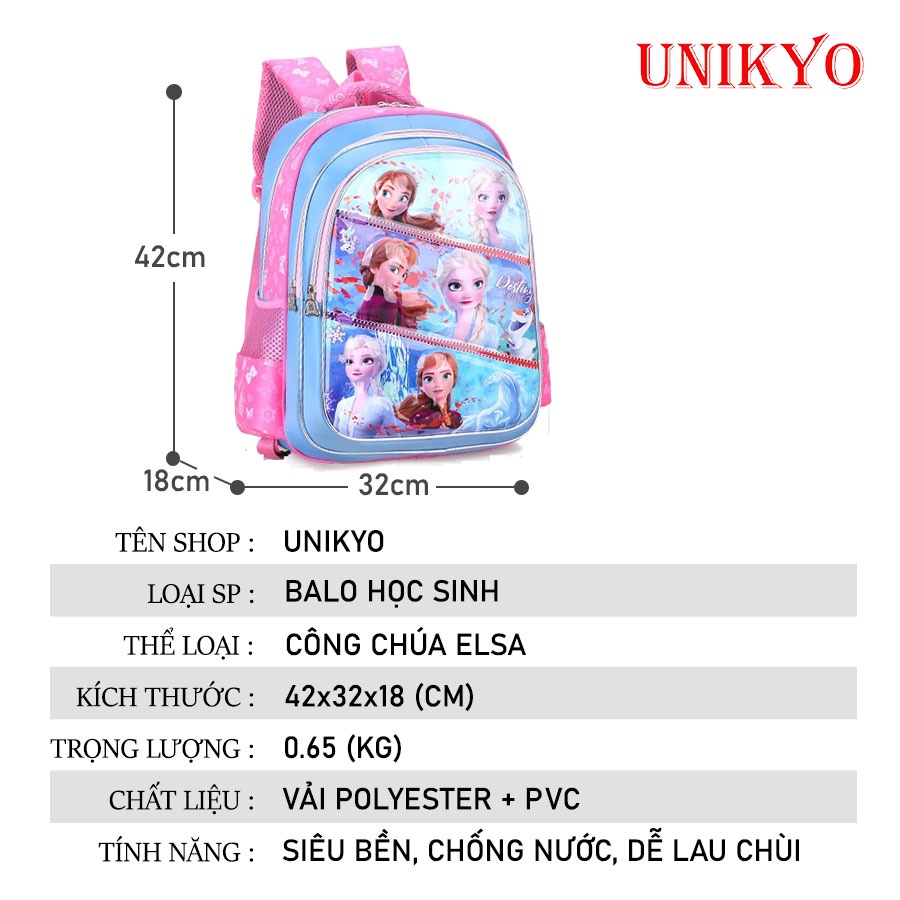 Balo cặp đi học trẻ em công chúa Elsa kèm túi học thêm và hộp bút bộ 3 ba lô học sinh tiểu học cho bé gái Unikyo UN39