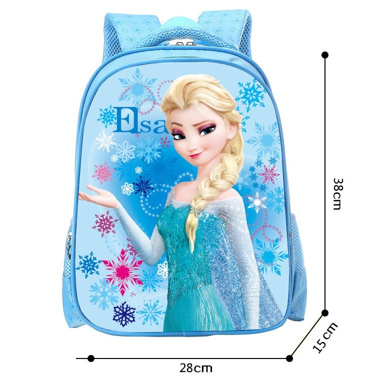 ****** VL ****** Kích thước : 38cm x 28cm x 16cm (Cao x Dài x Rộng) Trọng lượng : 500 gram Chất liệu : Vải dù siêu nhẹ, chống thấm cực kỳ tốt, không độc hại, không có mùi hôi. Thiết kế : Gồm 2 ngăn lớn chứa đồ dùng, đựng vừa bảng và giấy A4. Thêm 2 ngăn nhỏ hai bên để nước uống. Quai đeo : Có quai đeo 2 bên để phân bố đều trọng lượng lên hai vai của bé. Có mút đệm êm vai chống cong vẹo cột sống cho trẻ. Khóa kéo : Bền đẹp thuận tiện dễ dàng đóng mở. Balo học sinh với màu sắc bắt mắt, dễ thương mang lại sự gần gũi cho các bé với các nhân vật hoạt hình Elsa, Anna... Điều này giúp thu hút các bé hơn khi được mang đến lớp học mỗi ngày.