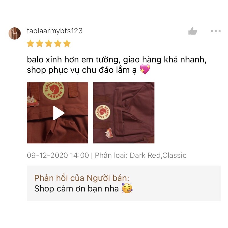 Balo Kanken OX RED đỏ đô tặng huy hiệu có feedback