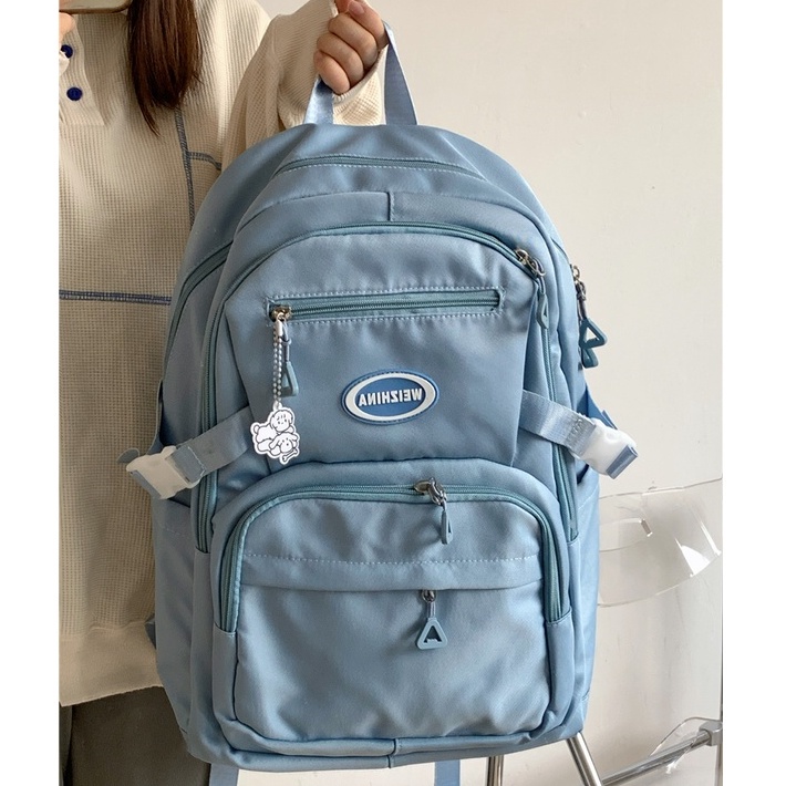 Balo nữ nhiều ngăn, form to, chống nước phong cách basic kèm sticker