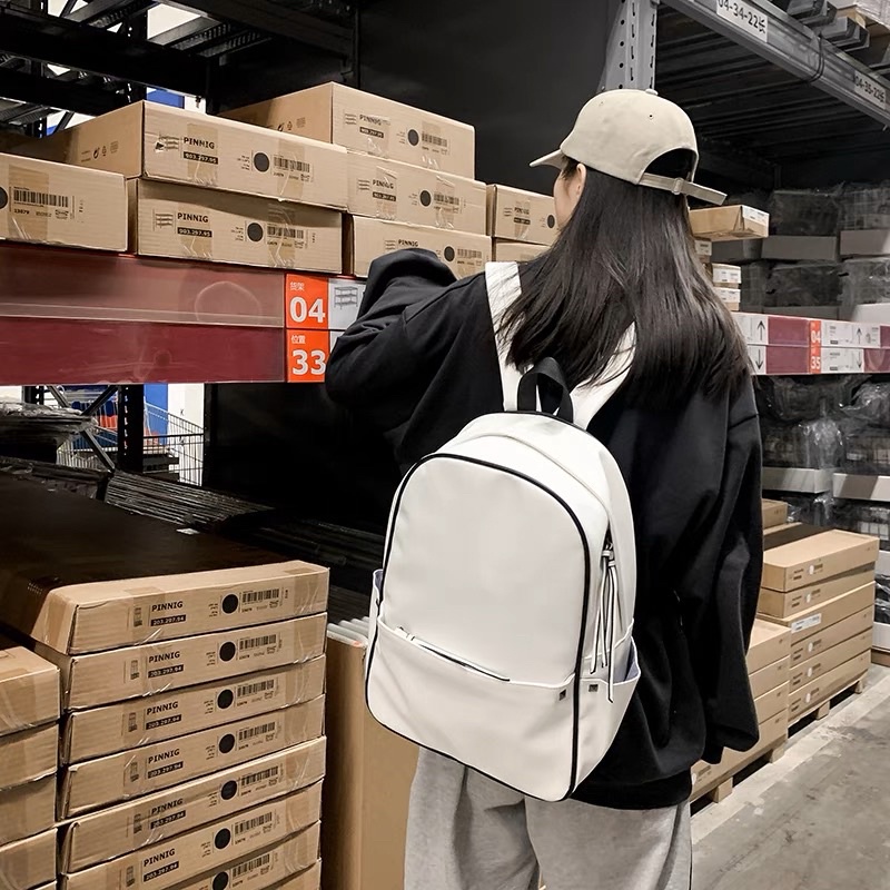 Balo thời trang Basic Da 2 màu trắng đen đơn giản học sinh sinh viên đi học đi làm đựng vừa sách vở laptop cặp unisex