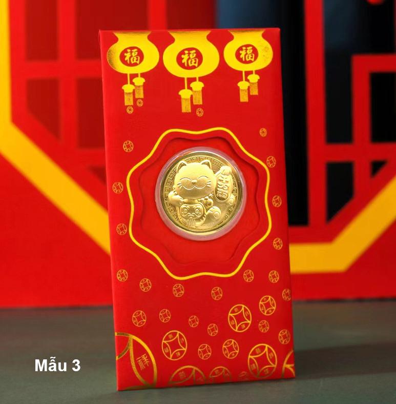Bao lì xì mèo thần tài như ý cát tường vàng 24k 9999 - Mẫu 3 - PASA COLLECTION
