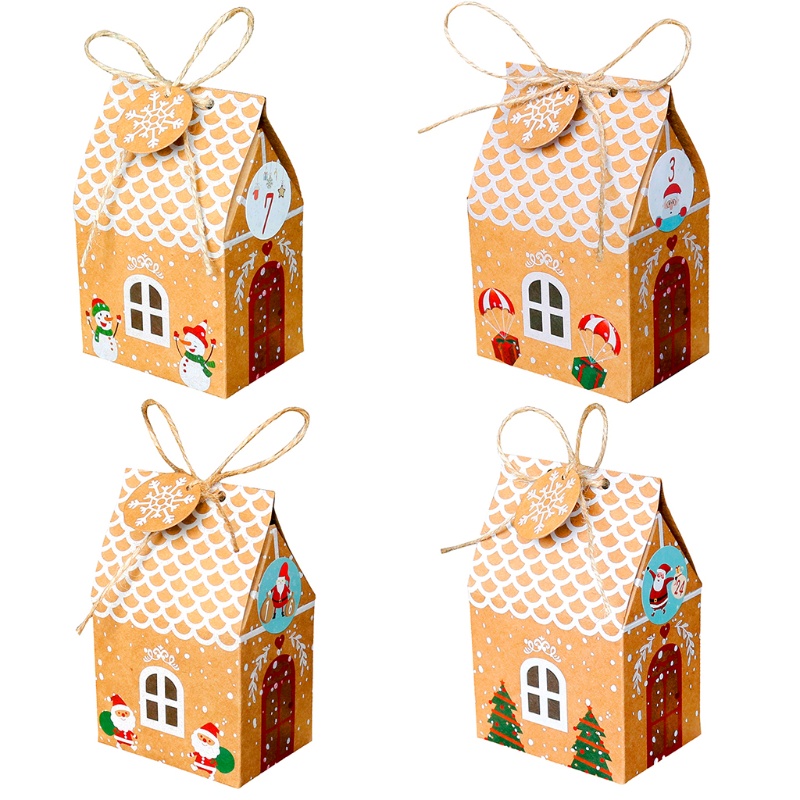 Be> DIY Christmas Advent Calendar Box 24 Sets Xmas House Kraft Paper Bag