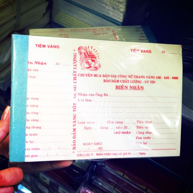 Biên lai thanh toán trong giao dịch mua bán cho những cửa hàng vàng bạc đá quy, cuốn biên nhận giao dịch mua bán @Hàng đảm bảo đẹp , cam kết trả hàng hoàn tiền nếu khách không hài lòng , các bạn cứ yên tâm mua sắm nhé
