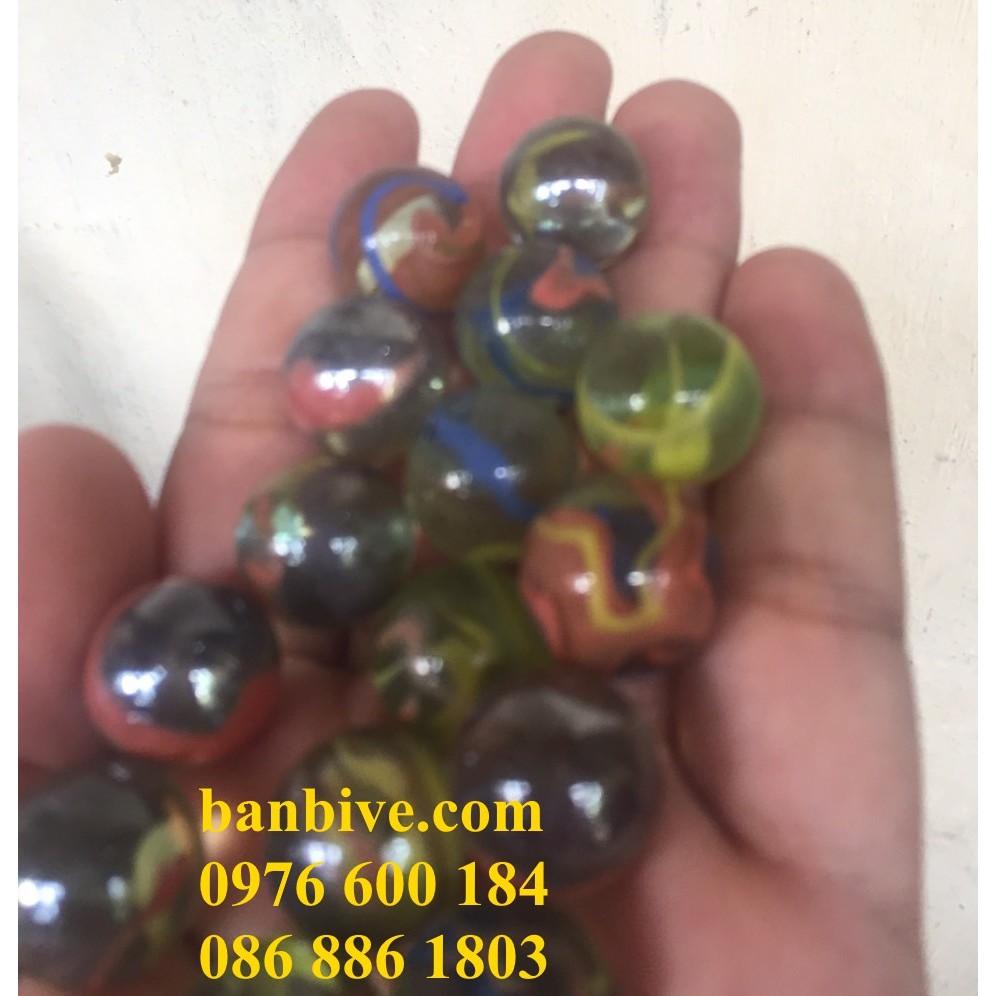 Bi ve - bộ viên bi thủy tinh vân trong vân ngoài trộn nhiều màu 16mm bộ 10 viên