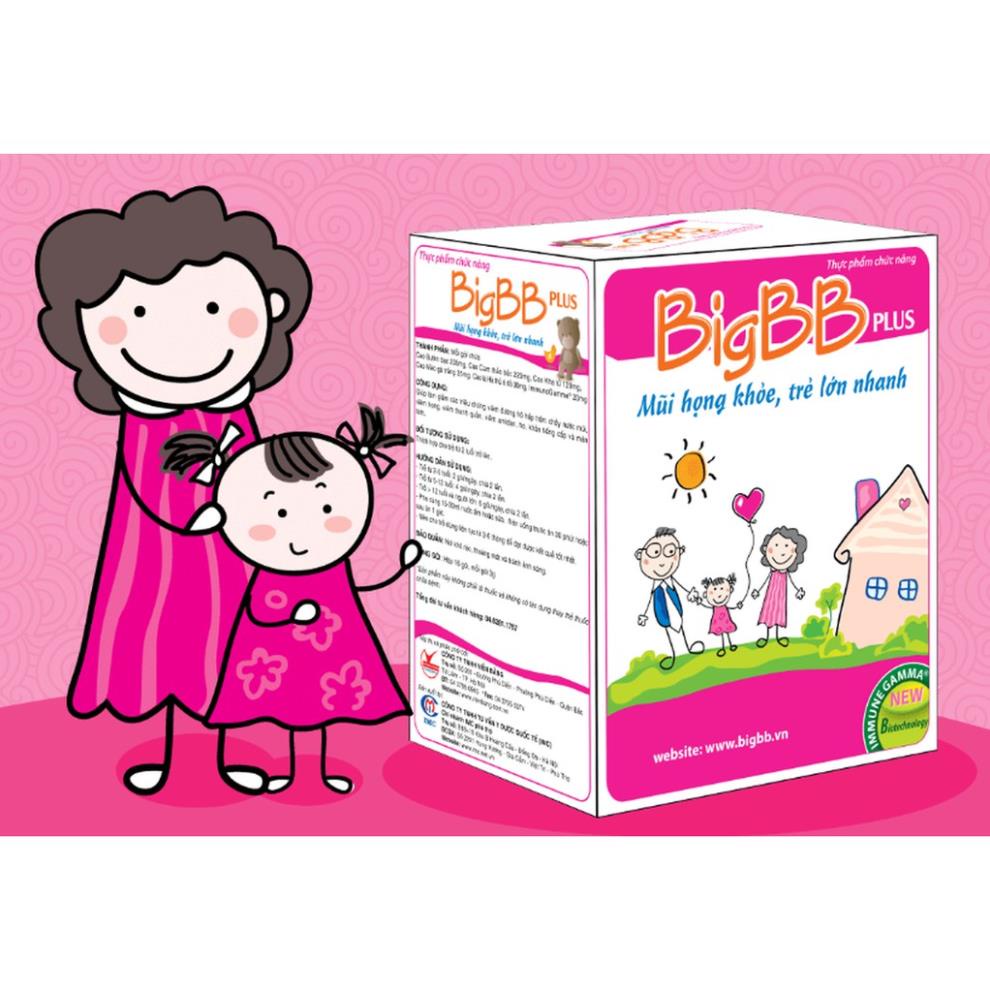 * Đóng gói: Hộp 16 gói , mỗi gói 3g * Hướng dẫn sử dụng: Mã sản phẩm: BigBBPLUS Nhà cung cấp: ông ty TNHH Tư Vấn Y Dược Quốc Tế (IMC) Xuất xứ: Việt Nam Giấy phép: 851/2015/XNCC-ATTP Quy cách: Hộp x 16 gói cốm vị socola Tình trạng: Còn hàng. BigBB Plus Hồng giúp giảm triệu chứng viêm đường hô hấp trên: chảy nước mũi, viêm họng, viêm thanh quản, viêm amidan, ho, khản tiếng cấp và mãn tính. Hạn chế dùng kháng sinh cho trẻ - Trẻ dưới 2 tuổi: Liều dùng tham khảo ý kiến của bác sỹ/ dược sỹ trước khi sử dụng. Trẻ từ 2 – dưới 5 tuổi: 2 gói/ngày, chia 2 lần. Sản phẩm này không phải là thuốc và không có tác dụng thay thế thuốc chữa bệnh". - Trẻ từ 5-12 tuổi: 4 gói/ngày, chia 2 lần - Trẻ > 12 tuổi và người lớn: 6 gói/ngày, chia 2 lần. - Pha với 15-30ml nước ấm hoặc ngậm trực tiếp. Nên uống trước khi ăn 30 phút hoặc sau khi ăn 1 giờ. - Nên cho trẻ dùng liên tục từ 15 - 30 ngày để có kết quả tối ưu. -Pha cùng 15-30 ml nước ấm -Nên uống trước bữa ăn 30 phút hoặc sau ăn 01 giờ -Nên cho trẻ dùng liên tục từ 1-3 tháng để đạt được kết quả tốt nhất Sản phẩm này không phải là thuốc và không có tác dụng thay thế thuốc chữa bệnh"