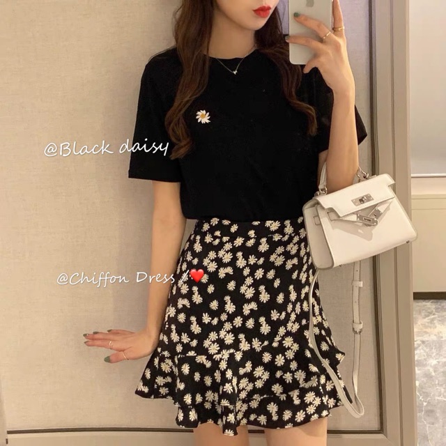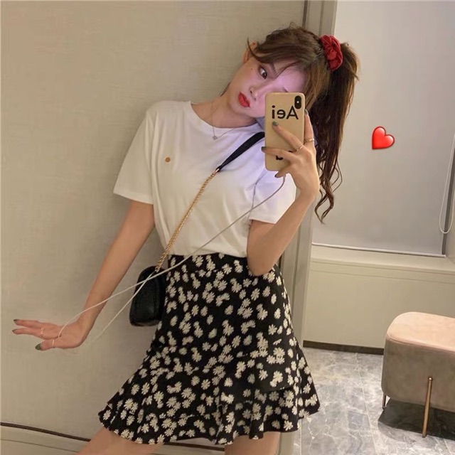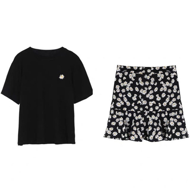 Bigsize S-4XL Set rời áo phông thêu hoa cúc + chân váy đuôi cá hoa nhí 2020