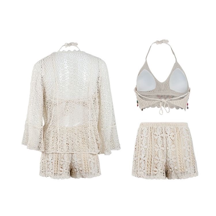 Bikini Đồ Bơi Nữ 3 Món Có Áo Choàng Kín Đáo Len Móc Ren Cao Cấp Br10