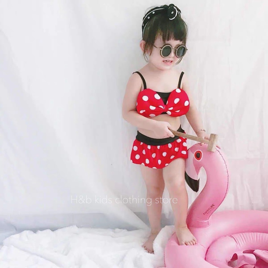 Bikini Cho Bé Gái 3 Chi Tiết Mẫu Đỏ Chấm Bi 0-5 Tuổi QB06