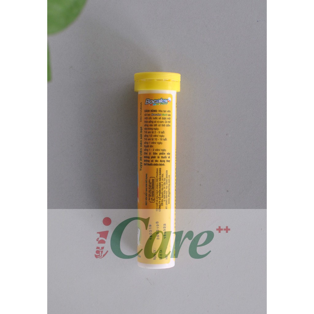 SẢN PHẨM NÀY KHÔNG PHẢI LÀ THUỐC KHÔNG CÓ TÁC DỤNG THAY THẾ THUỐC CHỮA BỆNH! CÁCH DÙNG: Hòa tan viên sủi bọt Bocalex Multi vào một cốc nước sẽ được một thức uống có vị cam. Có thể uống vào bất cứ thời điểm nào trong ngày. Trẻ em từ 2 - 9 tuổi: uống 1/2 viên/ ngày. Trẻ em từ 10 - 18 tuổi: uống 1 viên/ ngày. Người lớn: uống 1 - 2 viên/ ngày.. #suivitamin #suic #icare #nhathuocicare #bocalex #vitamin #vitamintonghop