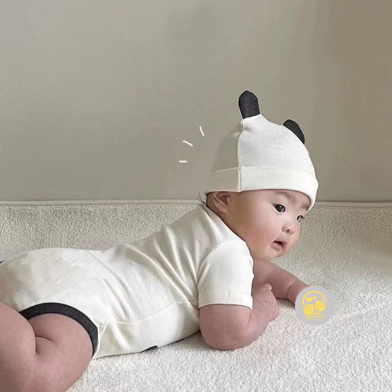 Body chip Gấu Trúc kèm mũ mát lạnh, body đùi cho bé mẫu quần áo sơ sinh, đồ liền thân cho bé 0-12M
