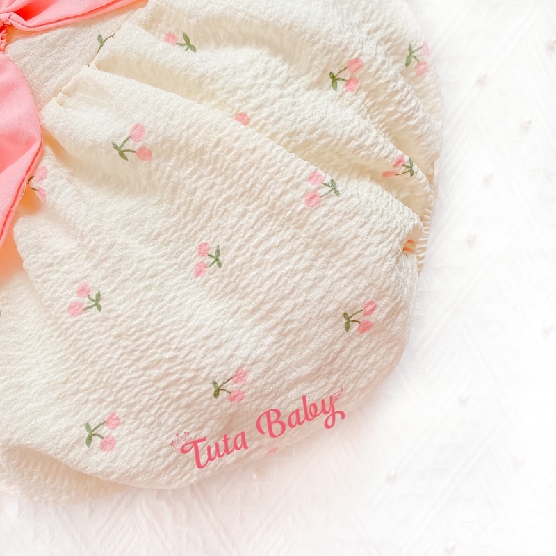 Bodysuit Cho Bé Cherry Hồng Dài Tay Kèm Mũ, Bao Chân, Không Kèm Hộp