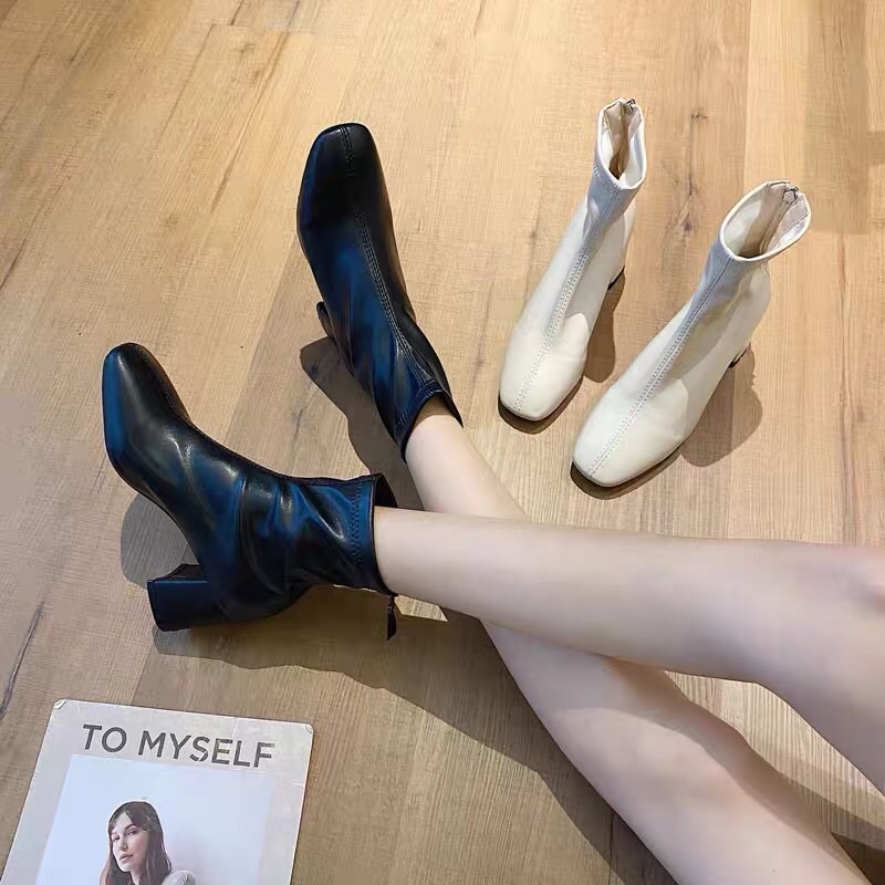 Boots da nữ gót vuông khoá sau da sịn mã 99333 , giày bốt nữ da mềm 2 màu siêu hot