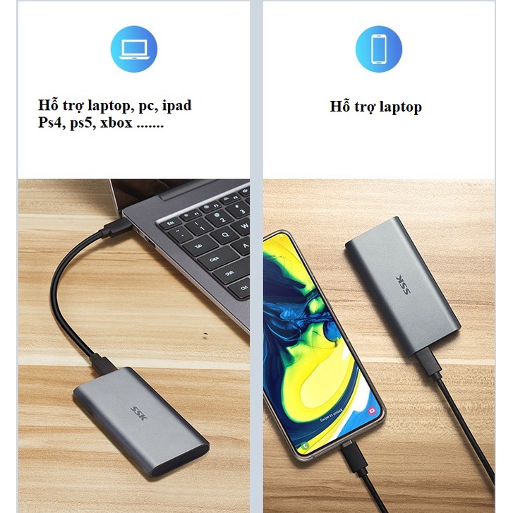 + SaiGon shop chuyên bán phụ kiện và linh kiện máy tính - Tất cả đều được kiểm tra kĩ trước khi gửi đi , 1 đổi 1 trong suốt thời gian bảo hành - Có SDT và địa chỉ rõ ràng nên các bạn cứ yên tâm khi mua tại shop mình *** lưu ý: ssd m2 sata khác với ssd nvme, các bạn xem hình số 2 để xem ssd mình thuộc loại gì nha ----------------------------------------------------------------------------------------------- — Box chuyển đổi SSD M2 sata sang usb 3.0 – SSK C324 — + Thông số kĩ thuật: – Chuyển đổi ssd m2 sata sang usb 3.0 (đầu cắm vô laotp của bạn là usb 3.0) – Thương hiệu: SSK C324 – Hỗ trợ: dung lượng đến 4Tb – Hỗ trợ: M2 sata (kích thước 2230, 2240, 2260, 2280) – Cổng tiếp xúc máy tính: chuẩn cắm usb 3.0 – Tốc độ truyền tải: 5Gbps – Vật liệu: hộp kim nhôm – Kích thước: 9,7 – 10 – 3,9 cm (dài, cao, rộng) – Hỗ trợ: win 7,8,10, mac os, linux …. – Trọng lượng: 0,1kg – Bảo hành: 1 năm ---------------------------------------------------------------------------------------- - Liên hệ: 47/3a nguyễn văn săng – phường tân sơn nhì – quận tân phú – tp. Hồ chí minh - SDT: 0927327826