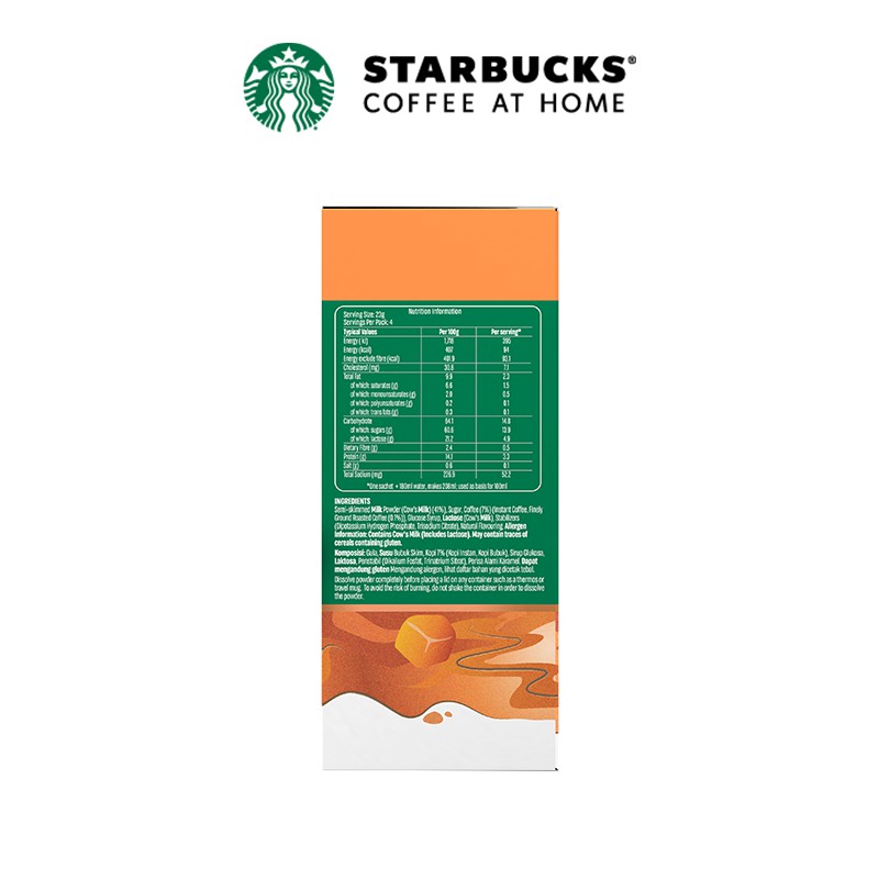 Cà phê hòa tan cao cấp Starbucks® Caramel Latte lấy cảm hứng từ hương vị Caramel Macchiato được yêu thích tại cửa hàng Starbucks®. Kết hợp hoàn hảo 100% hạt cà phê Arabica nguyên chất cùng sữa và hương caramel bơ quyến rũ, phủ lên trên lớp bọt sữa mềm mịn mang đến ly