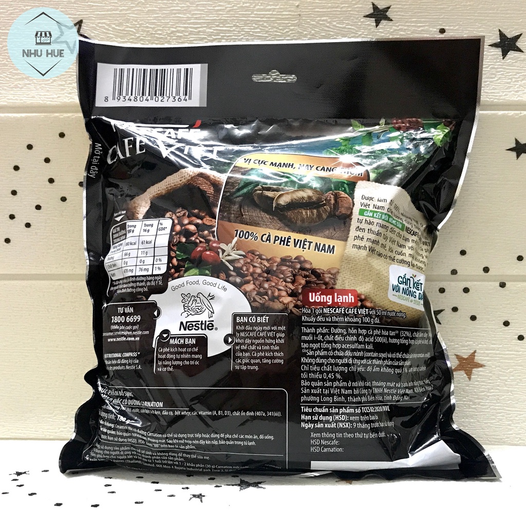 * Thông tin sản phẩm: NesCafé Cà phê Việt đen đá Cà phê đen đá NesCafé Việt mang trong mình vị đắng quen thuộc và hương thơm tự nhiên vốn có, nay được bổ sung gia tăng hàm lượng cà phê nguyên chất, cho hương vị cực mạnh, thơm ngon gấp bội. Sản phẩm được tạo ra để mang đến niềm đam mê về một loại cà phê nguyên chất và thuần khiết. Bạn sẽ cảm nhận được hương vị đậm đà rất Việt Nam, vị đắng dịu nhẹ ban đầu và "dư âm" của vị cà phê đọng lại nơi cổ họng không thể nào quên. Còn gì tuyệt vời hơn khi khởi đầu ngày mới với một ly NesCafe Việt cà phê đen đá, hớp một ngụm đặc trưng vị cà phê mạnh mẽ, bạn như được khơi dậy nguồn hứng khởi cho thể chất và tinh thần. Cũng nhờ đó, mọi câu chuyện, mọi kết nối được chia sẻ dễ dàng hơn. * Hướng dẫn sử dụng: Cho 2 gói cà phê hòa tan vào ly, rót 75-120 ml nước nóng (80-100 độ C) vào ly và khuấy đều. Cho thêm đá vào ly khuấy đều và thưởng thức. * Bảo quản: Nơi khô ráo, thoáng mát. Tránh ánh nắng trực tiếp. =================== #capheviet #cafeviet #nescafe #nescafeviet #nescafeden #cafeden #capheden #nescafeviet #nescaphe #caphevietden #cafe160 #vietdenda #caphedenda #cafedenda