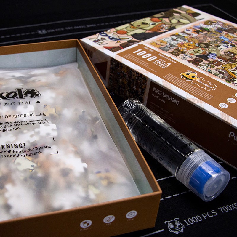 Puzzle Pokolo bộ xếp hình hoạt hình 1000 mảnh - Chủ đề: chó, mèo Chất liệu: Giấy Độ tuổi: 6+ Kích thước sau khi ráp: 70 x 50cm Puzzle Collection Những bộ xếp hình đến từ nhà Pokolo luôn nổi tiếng với độ hoàn thiện và tỉ mỉ trên từng sản phẩm của mình, hình ảnh chân thực, rõ nét, và khó có thể thấy các đường xếp trên các mảnh ghép, nó như một bức tranh chân thực vậy Mảnh ghép với độ dày 1.92mm, được thiết kế với 6 lớp một cách tỉ mỉ: Lớp vân nhám mỏng ở tầng đầu tiên, lớp film tráng ở tầng thứ 2, rồi mới đến lớp in hình ảnh, giấy craft 350g, 2 lớp giấy craft 400g, lớp giấy craf 350g, cuối cùng là lớp chống thấm mỏng. Một bộ hoàn chỉnh bao gồm các phụ kiện đi kèm: Hộp sản phẩm, một túi đựng các mảnh ghép, giấy hướng dẫn, tấm thảm lót puzzle, keo trong suốt, và hình ảnh để đối chiếu lúc xếp hình.