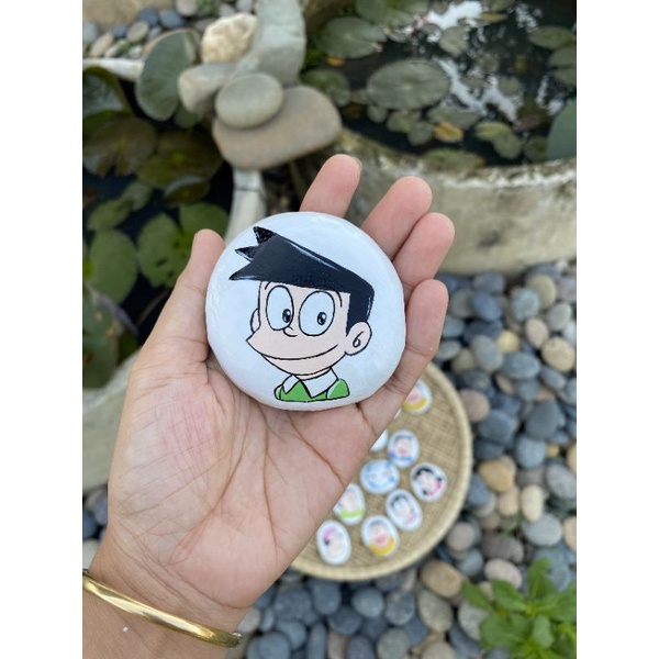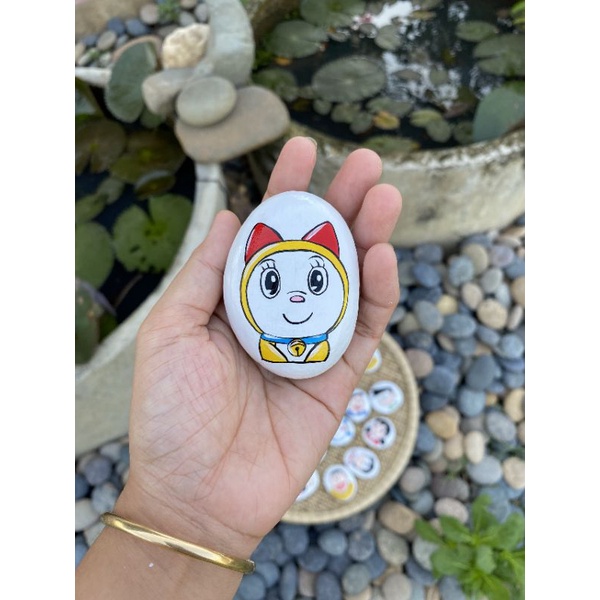 Các nhân vậy hoạt hình Doraemon trên đá cuội vẽ tay