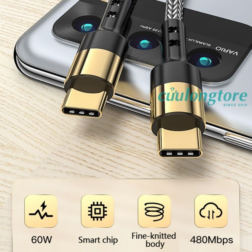 Cáp Sạc Nhanh PD 60W C to C và Lig mạ vàng bện dù cao cấp chống gãy gập rối dây cáp sạc cổng cắm kiểu 2 đầu type C