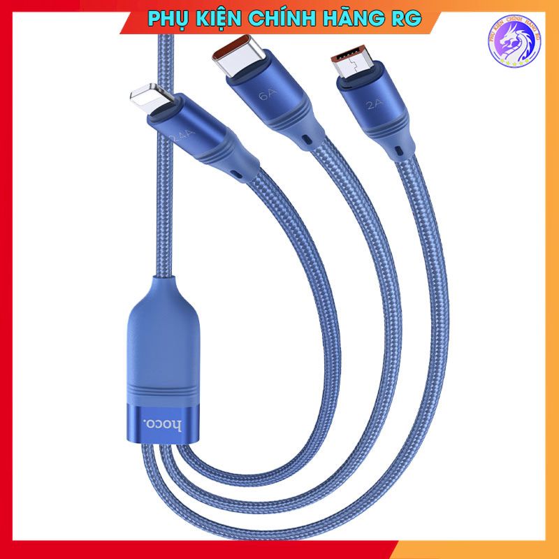 Cáp sạc nhanh và truyền dữ liệu 3 đầu 66W Hoco U104 hàng chính hãng bảo hành 12 tháng