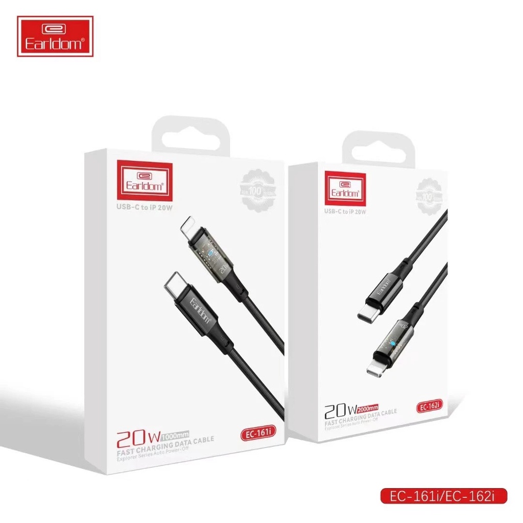 Cáp Sạc Tự Ngắt 20W iP Earldom EC-161i/EC-162i - sạc nhanh - bọc dù siêu bền - chống rối - dây dài 1m/2m - Cáp sạc được bọc vải dù siêu bền, chắc chắn chống rối và chống đứt hiệu quả - Cáp sạc EC-161i/EC-162i có chiều dài lên tới 1m/2m thuận tiện để sạc trong quá trình sử dụng - Hỗ trợ công nghệ sạc nhanh lên tới 20W giúp sạc nhanh cho mọi thiết bị - Trang bị thêm đèn LED giúp nhận biết điện thoại đang trong tình trạng sạc - Thiết kế cáp sạc có cổng đầu ra IP giúp sạc được cho các dòng điện thoại iP - Cáp sạc có khả năng tự ngắt khi pin đầy, phòng tránh chai pin, đảm bảo an toàn khi sạc - Hàng chính hãng Earldom bảo hành 1 năm. #capsactungat #capsacbocdu #earldom #20w #capsacnhanh